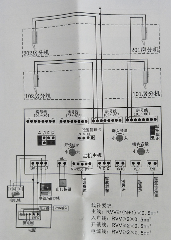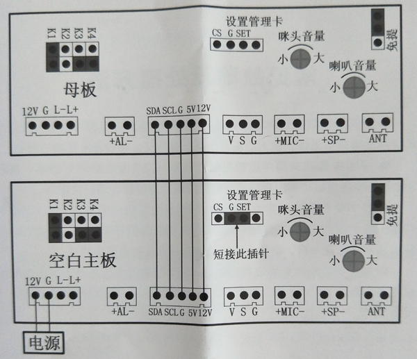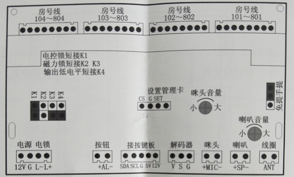 3)系統(tǒng)接好線即可使用,主機(jī)和分機(jī)無(wú)須編碼;