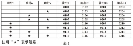 注:該表是樓層號的設(shè)置,打“★”表示該跳針短路(短路即是插針帽兩針插上)兩層共用一個解碼器的房間號編碼表如下表4所示: