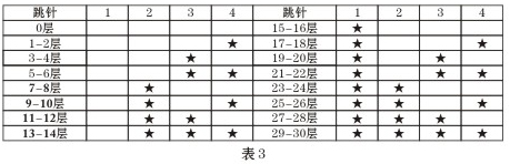 在待機狀態(tài)下在主機輸入#0000200302這個指令,主機進入兩層共用一個解碼器的標(biāo)準(zhǔn)房號編碼狀態(tài),解碼器樓層號編碼表,如下表3所示: