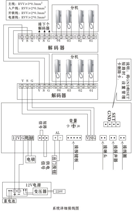 1. 系統(tǒng)采用總線制布線,必須增加解碼器,主干線為三芯線,入戶線為兩芯線無極性區(qū)分,布線簡單、施工方便;