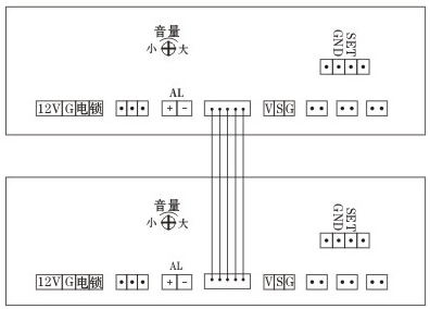 7、 數(shù)據(jù)復(fù)制: 斷電,撥掉主機按鍵板,用5P對插線插在按健板插座上,把2個主機板連接在起,如下圖所示。在目標(biāo)板主板上供電,供電后在目標(biāo)板上短路一下“GND和SET”跳針,聽到繼電器振動約10秒后停止數(shù)據(jù)即復(fù)制成功,這時2個主機板的卡數(shù)據(jù)相同,在多門口要求卡相同可以快速復(fù)制而不用每臺主機都用管理卡增加。