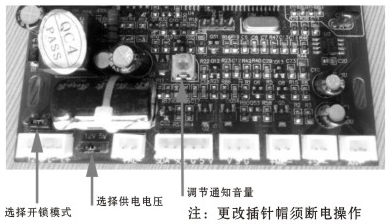 樓層和戶數(shù)符合標(biāo)準(zhǔn),可直接通過設(shè)置解碼器地址碼跳針(1. 2.3.4、5. 6. 7插針)來設(shè)置房號,解碼器板子如下圖所示: