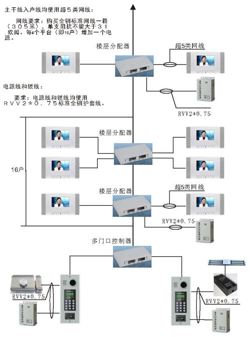 根據(jù)接線圖把單元內(nèi)所有的設(shè)備通上電源,在門口機(jī)輸入4位或3位房號后,門口機(jī)有提示聲,室內(nèi)分機(jī)按接聽后,即可對講。