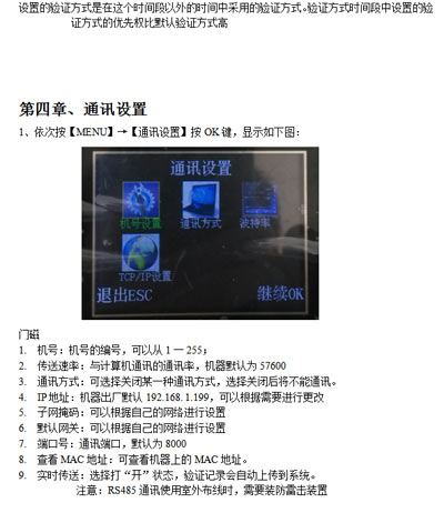 3)如TCP/IP不通訊,檢查門(mén)禁機(jī)里的IP是否設(shè)置,網(wǎng)段是否于電腦一致